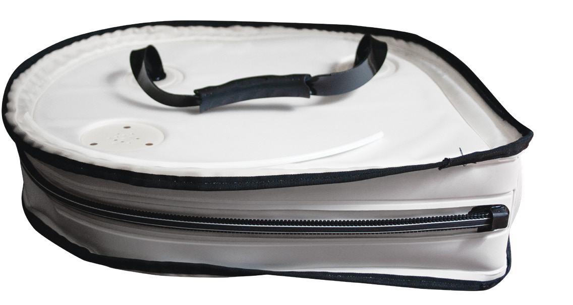-Borsone bianco: borsa lava-disinfettante in poliuretano, provvista di cerniera a tenuta stagna.