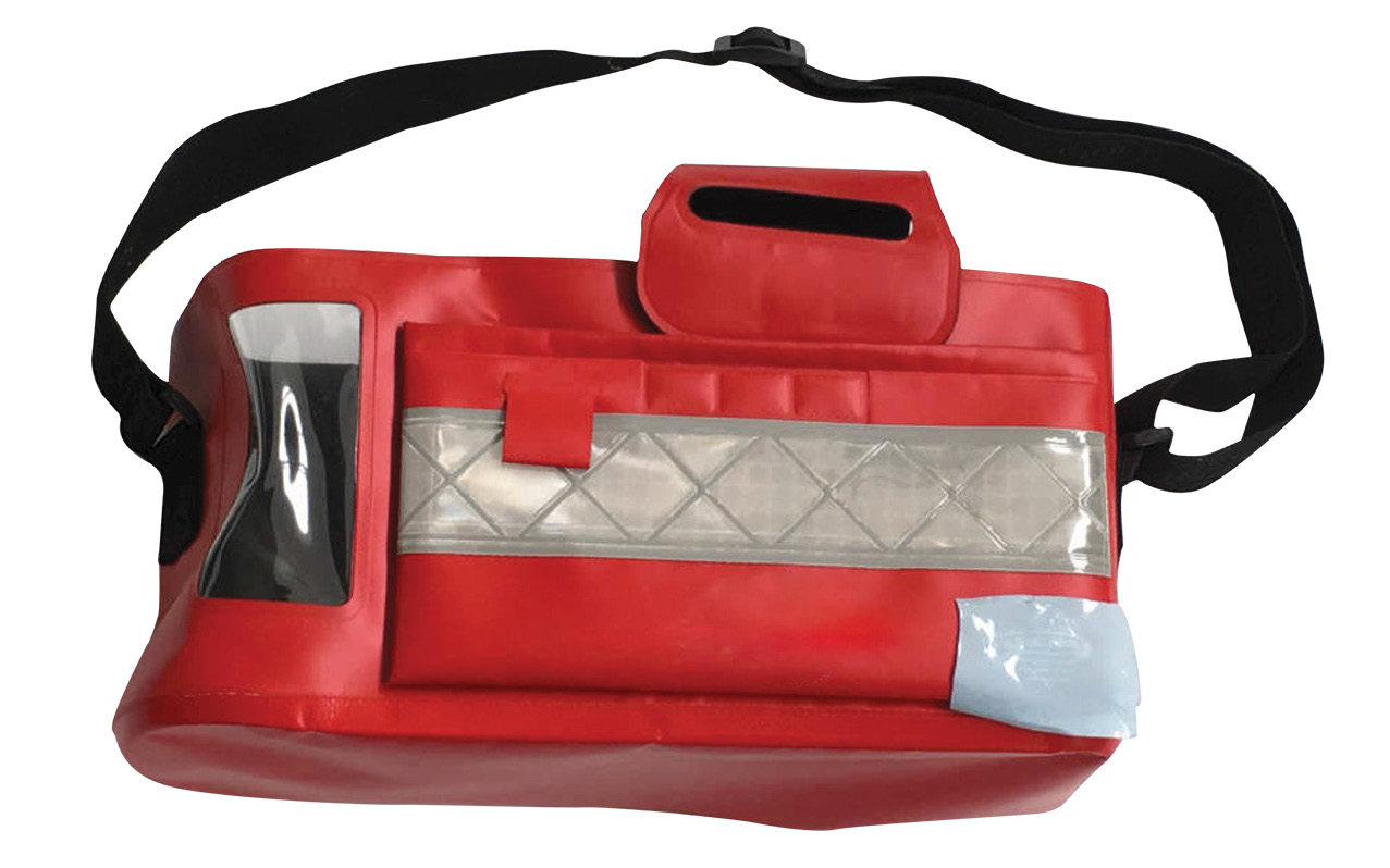 -Borsa rossa porta ossigeno: borsa porta ossigeno realizzata in PVC e poliestere telato.